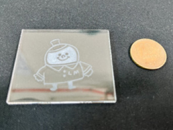 焼かれて透明になった石英ガラスの板にリューターを使いデザインを描いていきます。
